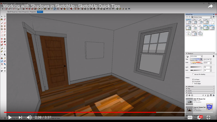 YouTube: Using shadows - SketchUp. Beginners level, 'How to.'